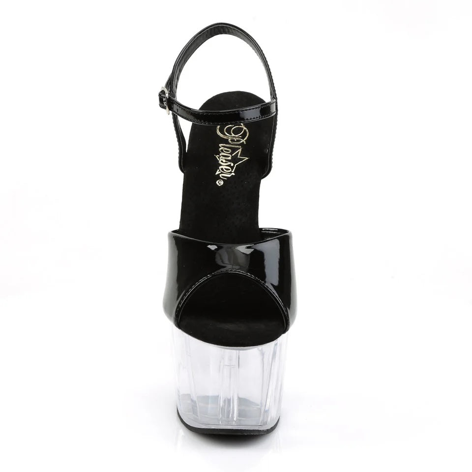 Look and feel your sexiest with the Adore-709 Ankle Strap Sandal. Featuring a towering 7-inch stiletto heel and a 2 3/4-inch platform, these sandals are designed to create an impression that's hard to forget. The ankle strap closure provides a secure and adjustable fit, while the sleek design adds a touch of elegance and sophistication. Whether you're looking for the perfect accessory to complete your exotic dancer look, or simply want to add some edge to your shoe collection, the Adore-709 will deliver.
