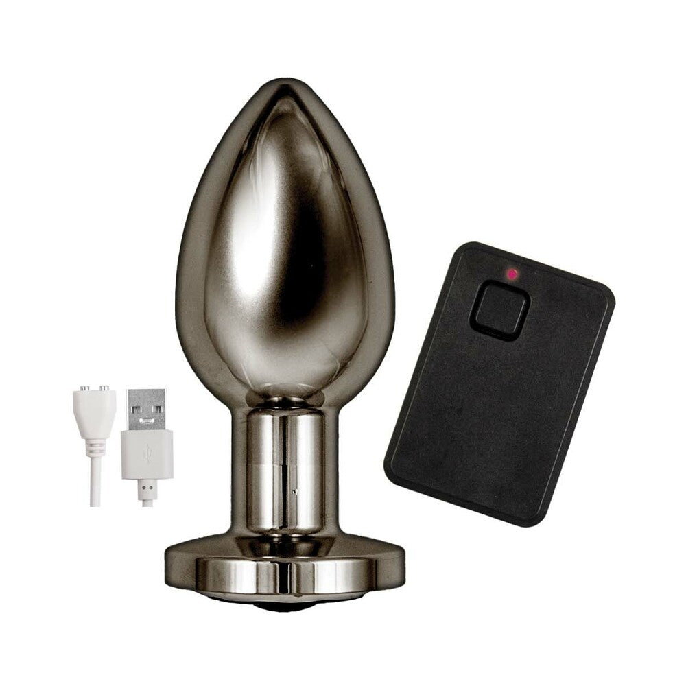 The Nasstoys Ass-Sation Butt Plug is a must have for every booty! Sized perfectly for beginners with a slim tapered shape and flat base with 10 tantalizing vibrating functions which may be controlled by pressing the power button on the base of the plug or with the discreet remote control! This metal plug is fun for temperature play and can be heated or cooled by running under hot or cold water. To charge, place the magnetic connecting points on the base of the plug to the prongs on the charger then connect the USB end to a power source. This metal plug is non-porous and easy to clean before and after each use with toy cleaner.
