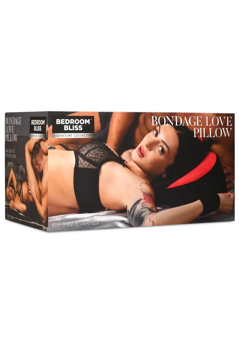 Lay your head, booty, hips, forearms or chest on this pillow to switch things up in the bedroom! This heart-shaped sex aid is made out of firm, high-density foam that lifts you up and doesn't give in or collapse under your weight. Let it support you through passionate, private moments with your partner as they shift your body into the most delicious poses that increase your pleasure! Attached to the pillow are built-in clips that bondage gear or other implements can connect to. Included with the pillow are 2 cuffs, 2 connector straps with D-rings and 1 restraint connector. The outer cover is soft and the inner cover is water-resistant to protect the foam. Strip both off after wet and wild playtime to throw them in the washing machine and easily clean up!