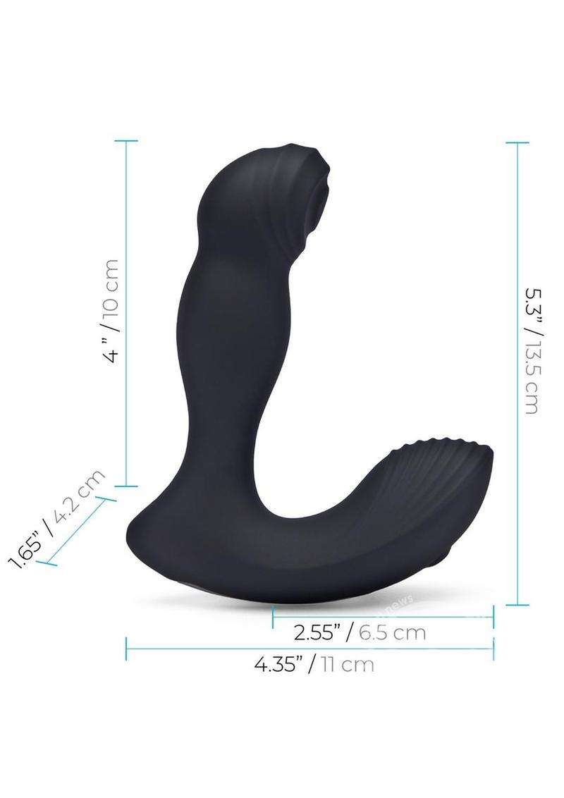 Tap into tantalizing titillation with the Thumper Prostate Massager from Blue Line. Provide simultaneous stimulation to your prostate and perianal area with independent motors that tap and vibrate all more most pleasurable points, or take your body on an adventure of full-body orgasms with dual motor strength vibrations. Give your sphincter the massage of a lifetime with a 4.5" hooded shaft and ridged texture made with 100% body-safe silicone for navigating the sphincter with pleasure. With Independently controlled tip-tapping and base vibrations, stimulate your stern as fast or slow as you'd like with 3 vibration intensities and 4 vibration patterns. Remote control capabilities lets you harness your pleasure hands-free, or grant control to your partner for a stimulating session of surprises. The 100% silicone body and splashproof charge port makes the Thumper safe to use with any water-based lube and super easy to clean with soap and water so you only need to worry about your pleasure.