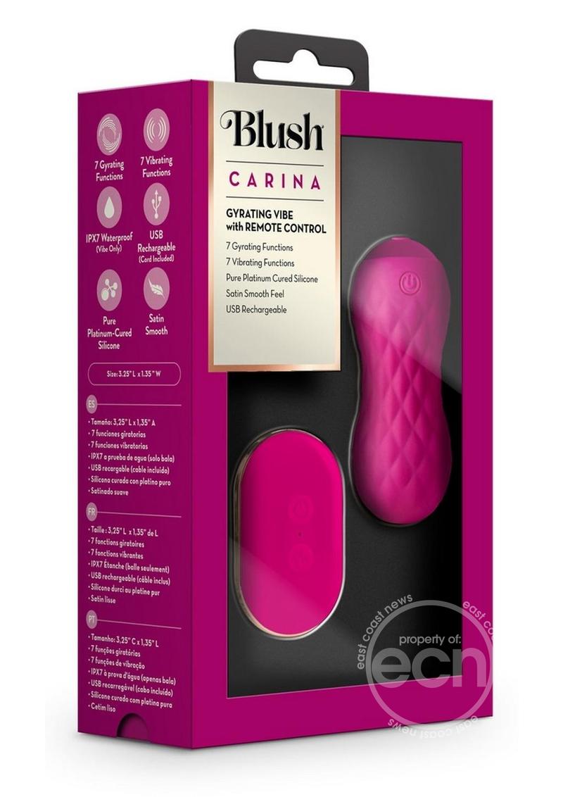 Live Lushly! The Lush Carina is here to deliver pleasure with 7 gyrating and vibrating rhythms that move the textured, rounded ends within you for added sensations during use! Packed with a wireless remote control for versatile couples and solo play (Up to 40 feet), Carina also has a pull loop for easy removal. USB rechargeable and silky smooth, Carina is made of Platinum-cured Silicone, it's Body-safe, Phthalate-free, and Latex Free, easy to clean, and ready to delight and please