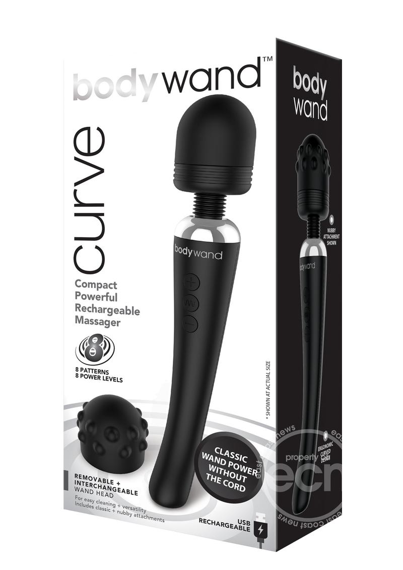 The Bodywand Curve gives you classic wand power without the cord. Featuring 8 patterns and 8 power levels, 3 button control, and a compact ergonomic design, the Curve is designed for clitoral and G-spot stimulation. The Curve comes with a smooth head and the nubby attachment.