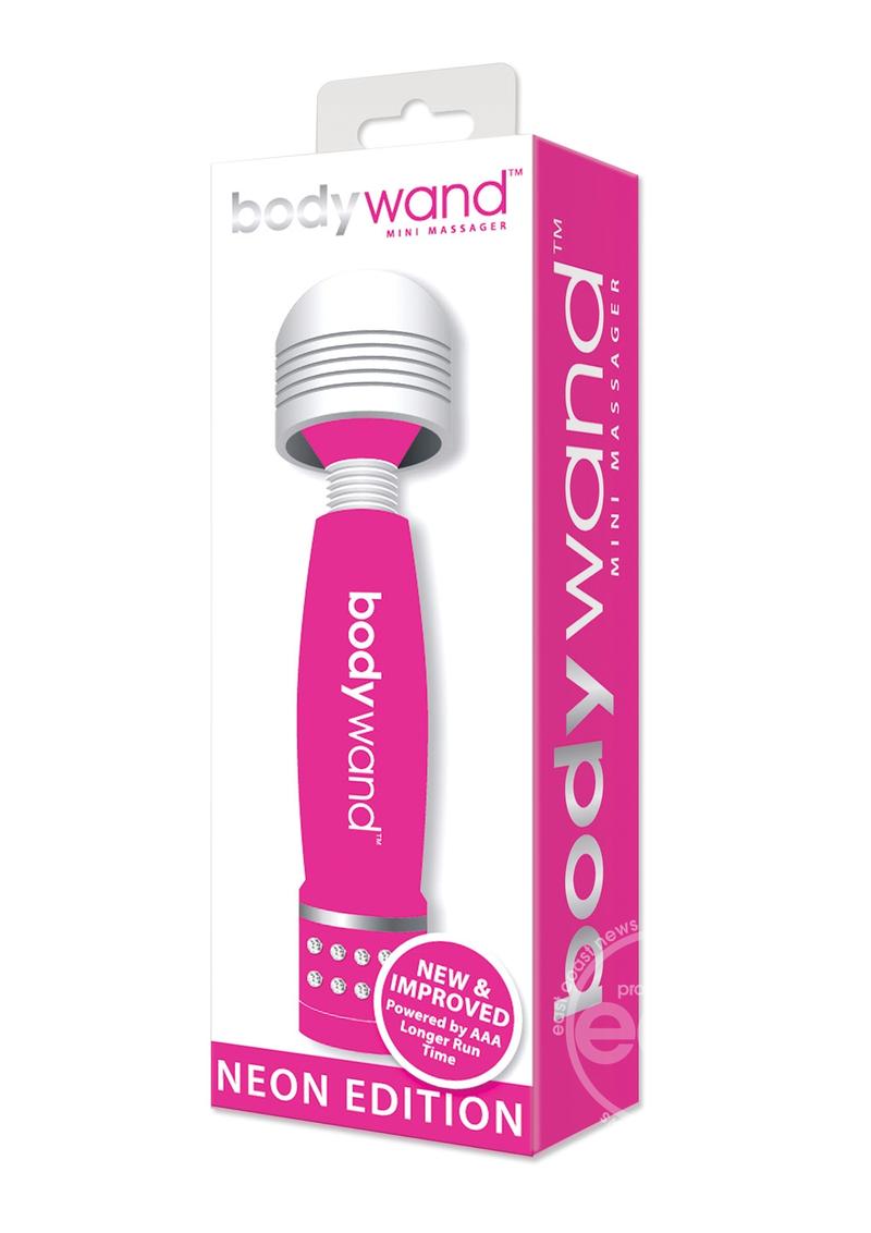 The New & Improved Bodywand Mini Wands are perfect for travel and on-the-go delights. Measuring just 4 inches tall, these wands were engineered for strong and continuous stimulation. Powered by a single AAA battery ( not included) which allows for a longer run time, and operated by a simple turn on the bottom.
