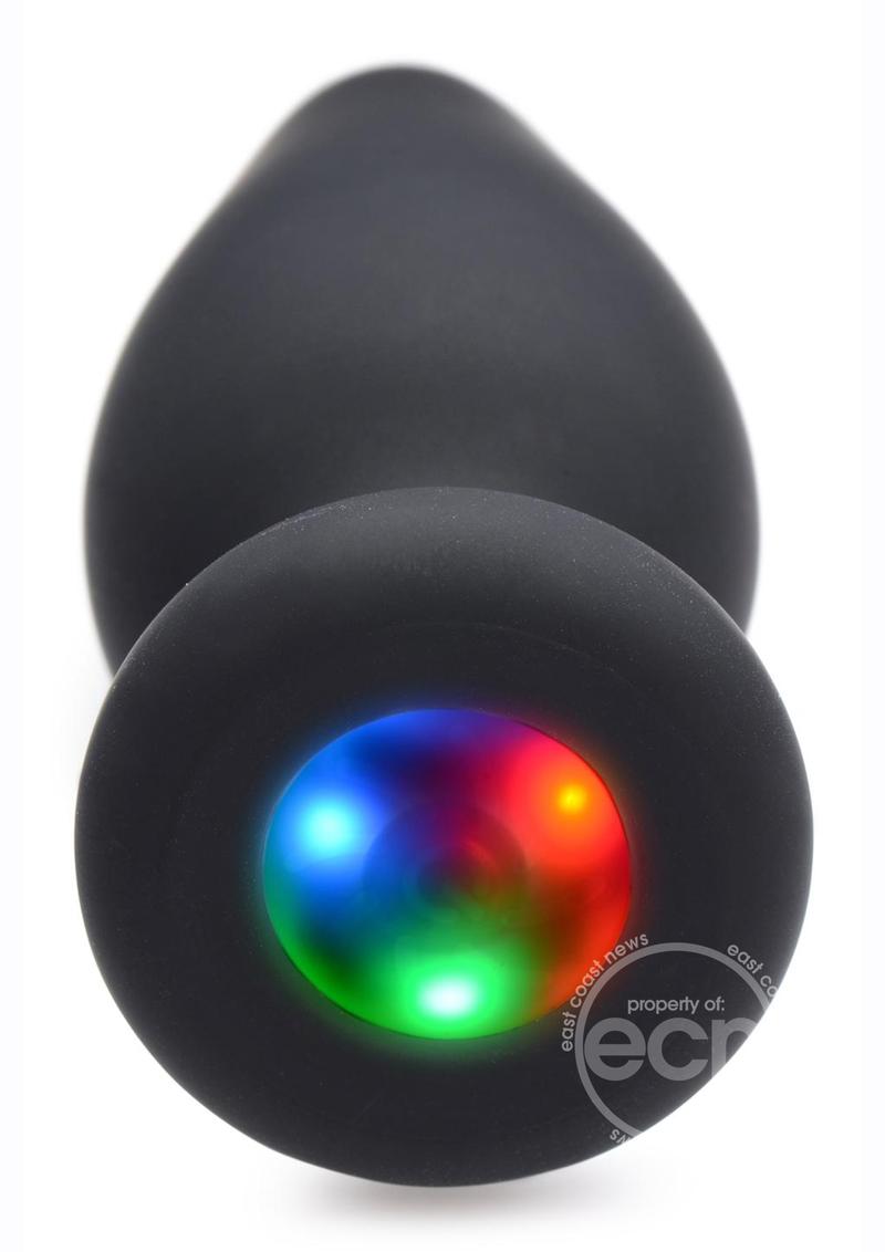 Light up the night with this light-up anal plug! Have some fun with your booty play and give your partner a light-show at the same time. This silicone anal plug has an LED light that shines red, green and blue and switches between 3 different light patterns! Find your partner in the dark or play some music that matches the pulsing beat of the LED light-show!