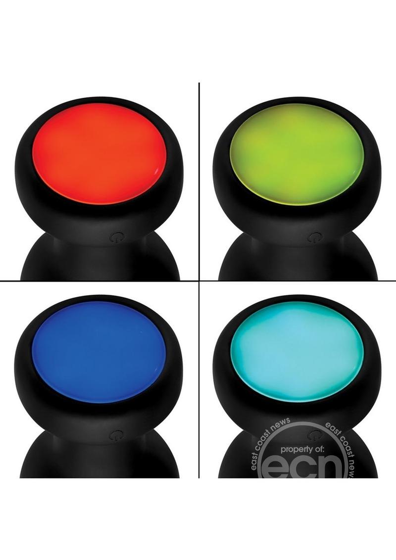 Put on a sexy backdoor light show! This petite plug nestles between your cheeks and buzzes your booty with 7 modes of powerful vibration. Meanwhile, 5 different LED light colors will flash out of your anus in a psychedelic sequence, with 3 speeds of strobing to choose from. Use the remote control to conveniently cycle through settings for both functions, or hand the power over to your partner. The tapered tip and silky-smooth silicone allow for a comfortable insertion. This is a great plug for a kinky raver or anyone who wants to bend over in the dark and surprise their partner. Preserve the high-grade, phthalate-free material by avoiding use with silicone lubricants and cleaning with mild soap or toy cleaner.