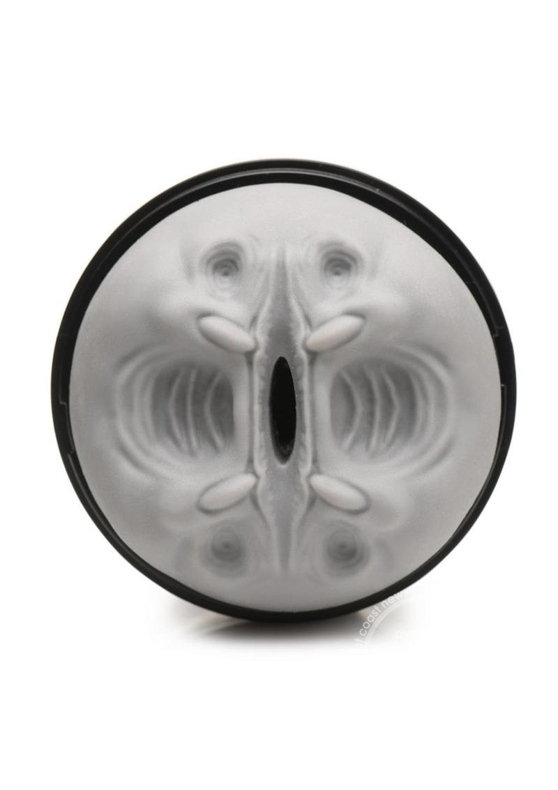 Do you get turned on by danger? This Predator stroker is soft gray with circular, textured dimples on either side of its ferocious slit! Inside the stroker are rows of textured ribs, grooves and nubs to drive you crazy as you dip yourself inside and enjoy pumping into the tight hole. Control the pressure and suction by using the silicone plug at the base of the case. Keep it in and each pump will add a little pressure and suction for a tighter squeeze! Remove the plug to release it. The case is open ended once the plug is removed so that you can easily rinse and let the water run through it. For an even more thorough clean up process, remove the stroker sleeve and wash it separately before letting it air dry. Place the cap on top once the sleeve is reinserted to keep it free of dust and debris. Use only with water-based lubricants. Enjoy indulging in your kinky fantasies of sci-fi or horror as you give into your dark desires!