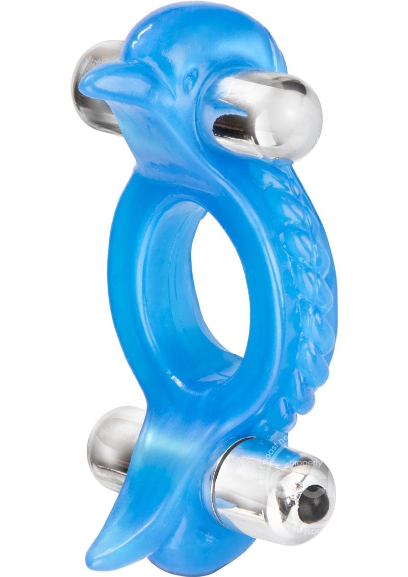 Double Dolphin Vibrating Cock Ring with Clitoral Stimulation - Blue