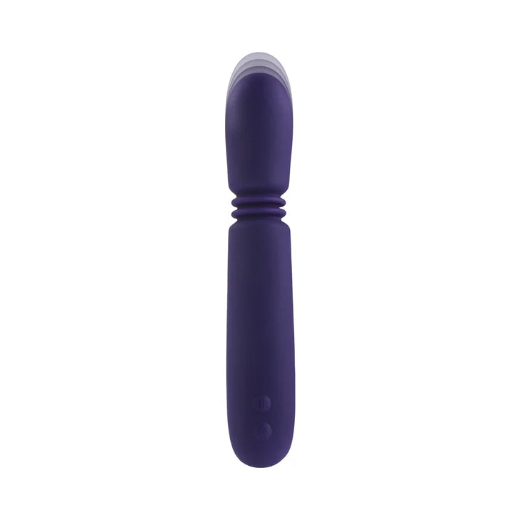 Put powerful thrusting vibration in the palm of your hand with this hard-working toy that delivers two deeply satisfying sensations in one pure silicone shaft. The accordion neck at the base of the tip stretches up in 3 unique patterns to give you deep thrills - amplified by intense vibration if you desire. Each water-submersible motor is controlled separately for deliciously customized pleasure.