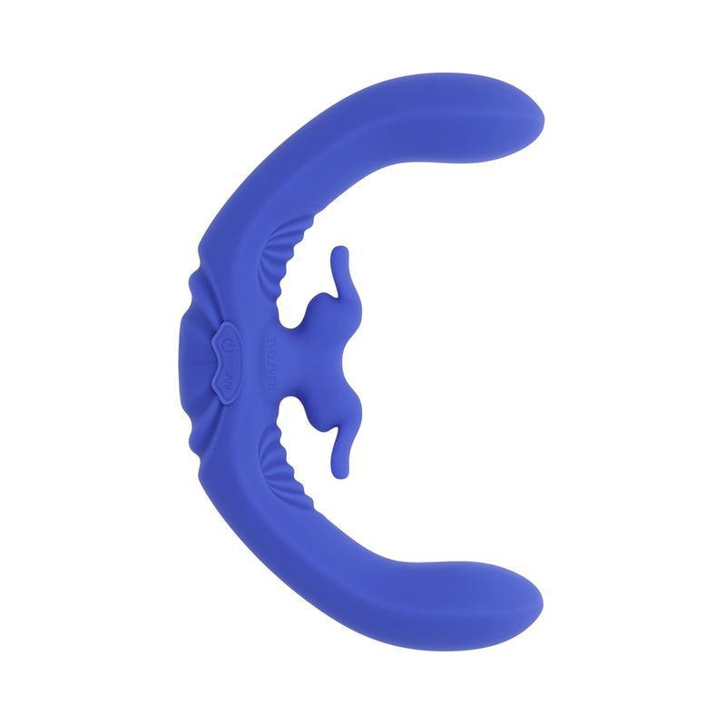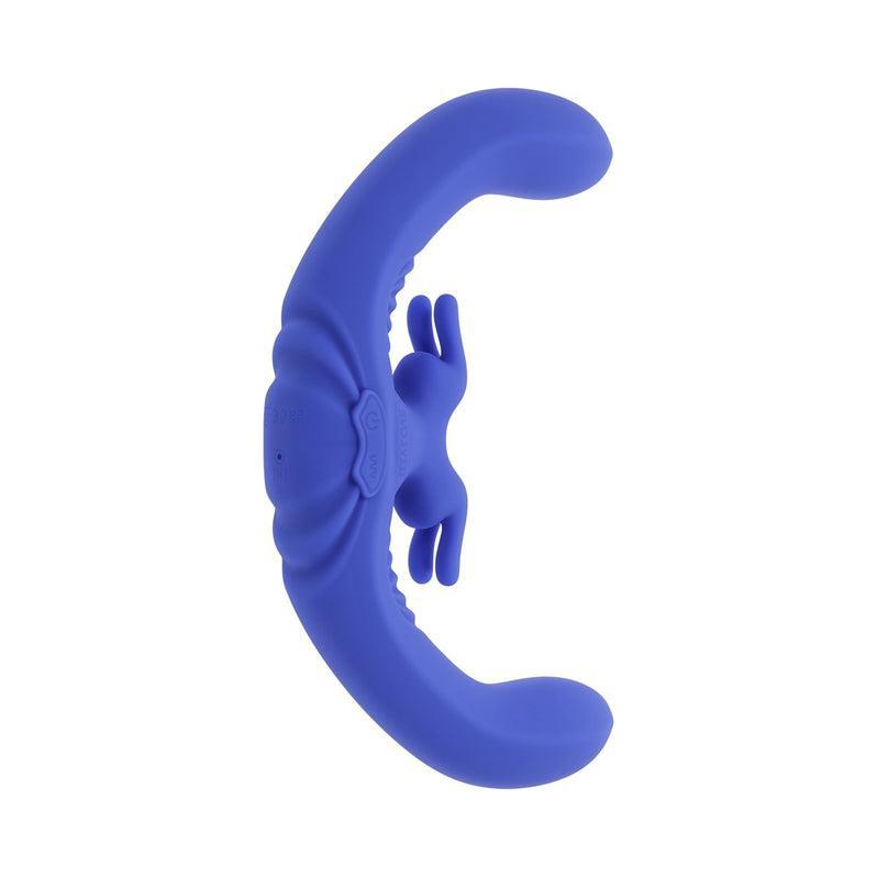 Take flight with this flexible dual-ended vibrator that features a curved, textured design and a 2-sided rabbit stimulator in the center. Powerful vibrations emanate from 3 motors – one in the center and one in each shaft – for an intense twin-pleasure experience.