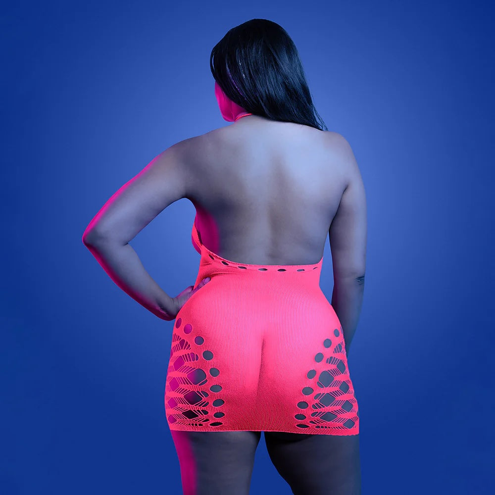 UV reactive open bodice halter dress and one pair of pasties