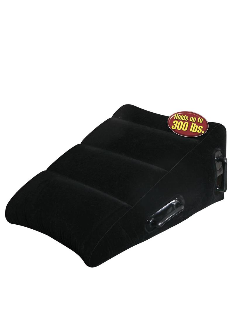 Indulge in your wildest fantasies with this Inflatable Position Master. The slanted, flocked design allows you to relax in any position without sliding off, while the EZ-Grip love handles are perfect for maintaining difficult positions without losing your rhythm. The air seal valve makes inflating the wedge a snap, and when the fun is over, simply deflate the Position Master and it's ready to go where you go. It's perfect for those romantic getaways and no one will know whats in your bag! Do it all with greater ease...no matter what position you're in! And lubricant doesn't even show up on the surface making it easy to clean, too! Holds up to 300 lbs. Inflatable dimensions are 14" tall tapering down to 7" tall, 31 1/2" long, end to end, and 24" wide.