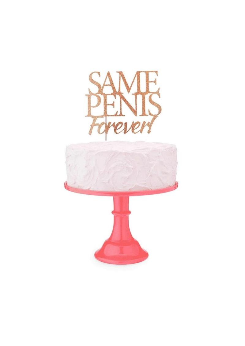 Same Penis Forever Cake Topper is a glittering rose gold 6 inch cake topper on non shedding glitter paper. This elegant cake topper is a great accessory for a bachelorette party and is our newest addition to the Glitterati Penis line of bachelorette party goods. * This product is flammable and should not be used near flame.