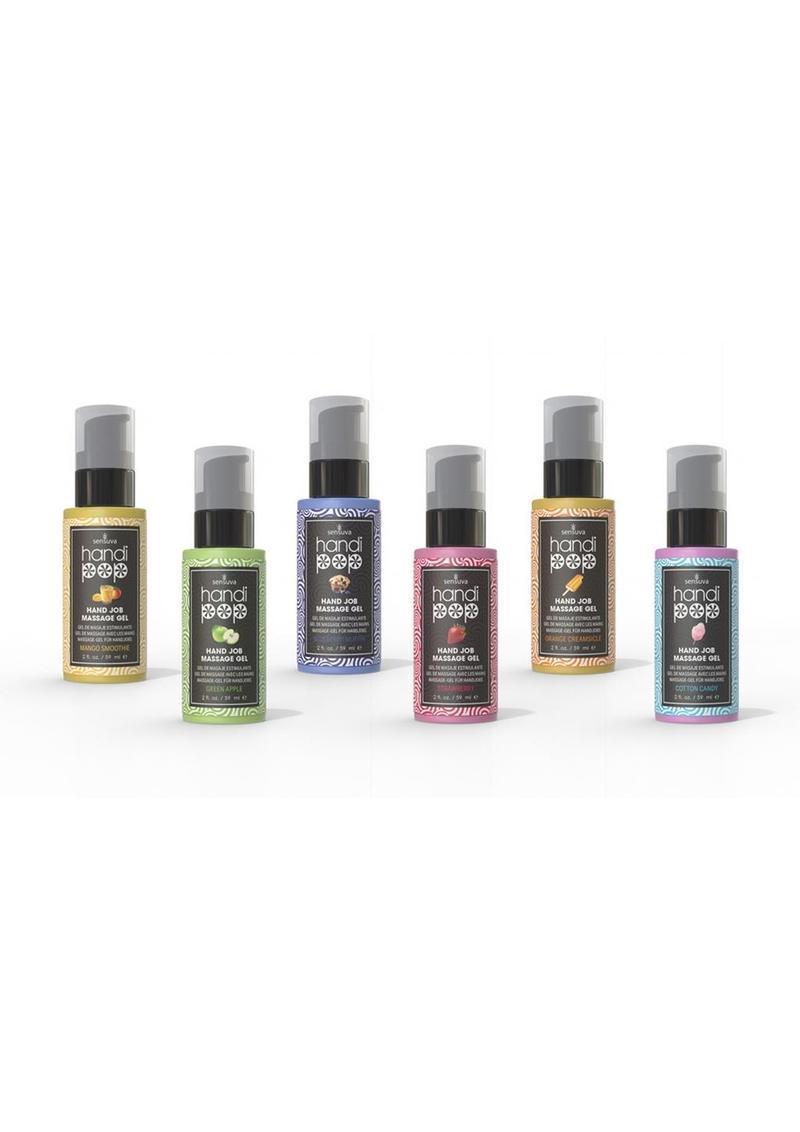 HANDIPOP HANDJOB MASSAGE GEL - BLUEBERRY MUFFIN- 2 fl oz - Let your hands work their magic. HandiPop was created to be ultra slippery so that it extends the length of your hand or body massage. It is fun to use with just your hands, OR combine it with other pleasure products like masturbation sleeves, textured toys and anything with vibration.