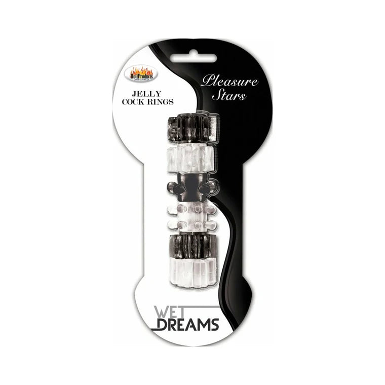 Jelly Stars Cock Rings are the in.Perfect Fitin. to keep you HARD all night long for your next Intimate encounter! Come in black and clear to tease and please! Super Soft silicone. Stretchy band fits any man!