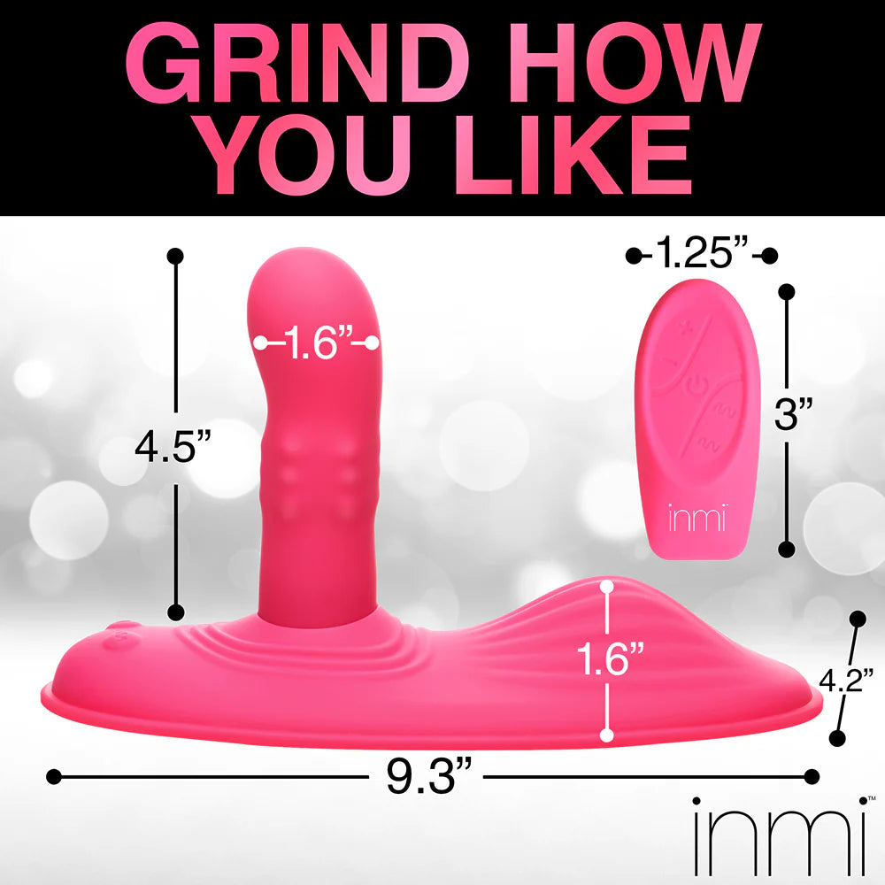 Transform any chair or couch into the perfect, sexy, saddle machine! This lightweight, travel-friendly grinding pad has a ribbed, round mound on one side to stimulate your backdoor and a rotating shaft with a round head to penetrate and pleasure you! Choose between 4 speeds and 7 patterns of vibration that you control with a remote. Ride hands-free and enjoy this discreet, powerful toy! The pad itself is made out of silky smooth, premium quality silicone that is phthalate-free and body-safe. Rated IPX6 waterproof it can handle being taken in the shower or any amount of gushing, wet streams. To clean, wash with warm water and mild soap, then rinse it off and spray it with a toy cleaner before patting it dry. Recharge both the remote and toy with the USB charging cable provided. Use only with water-based lubricants for best results.