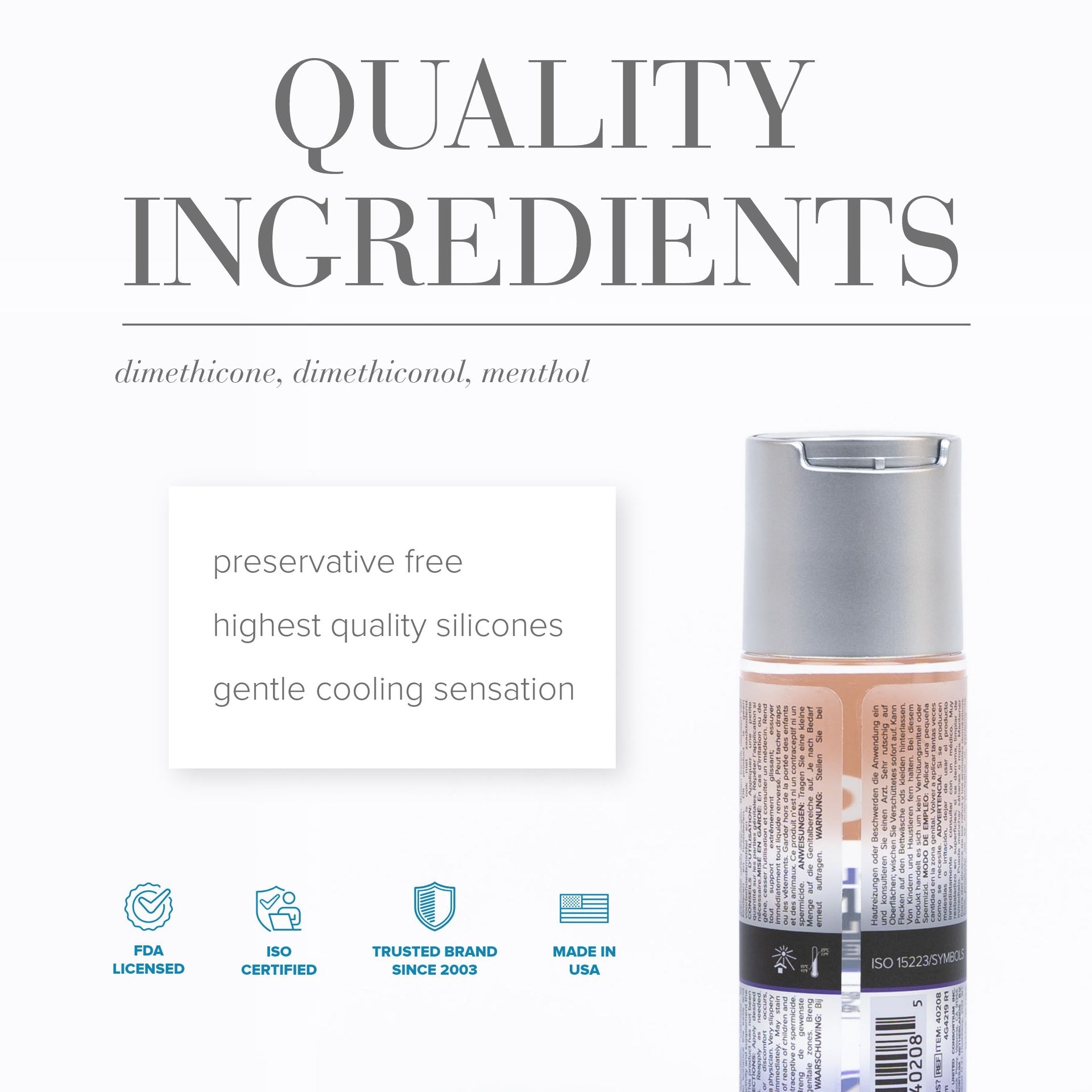JO Premium Anal Cooling is our luxurious, silicone-based formula designed to reduce friction during anal sex and more intense play. With its buttery smooth texture and long-lasting glide, JO Premium Anal Cooling is perfect for extended sessions when you want to feel every movement. The gentle cooling sensation adds a tantalizing tingle to every touch and caress. Its carefully balanced formula even dries to a sumptuous soft-touch finish that leaves your skin feeling soft and moisturized. This water resistant silicone-based formula stays where you put it.