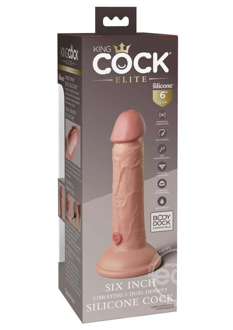 King Cock Elite Dual Density Vibrating Rechargeable Silicone Dildo 6in - Vanilla