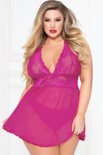 LACE & MESH BABYDOLL AND PANTY SET (NON-PACKAGED)