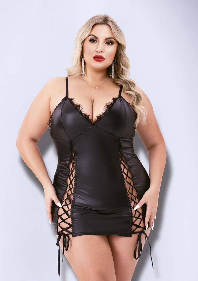 Turn heads in Baci’s seductive wetlook mini dress, crafted from 100% polyester for a form-flattering fit. The front sides feature a bold lace-up corset design, adding a touch of daring sophistication, while delicate frills around the chest create a playful and feminine allure. The dress is finished with two adjustable straps, ensuring a customizable fit and added comfort. Perfect for those who want to mix elegance with a hint of edge.