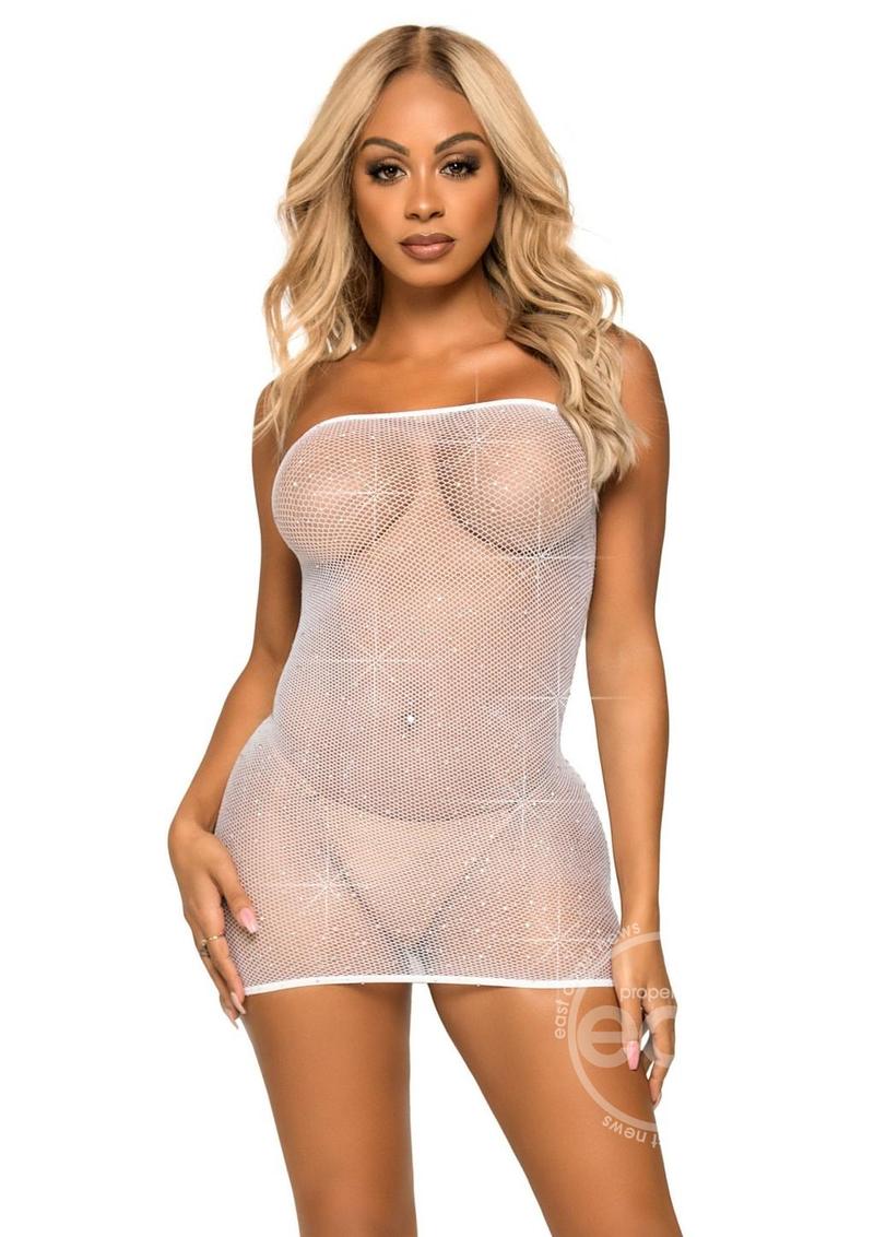 Leg Avenue Crystalized Fishnet Convertible Tube Dress - O/S - White