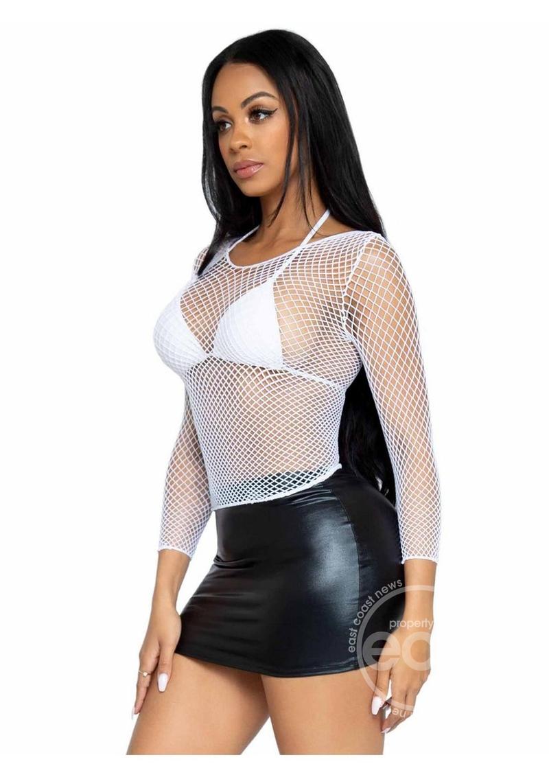 Leg Avenue Spandex Long Sleeved Industrial Net shirt - O/S - White