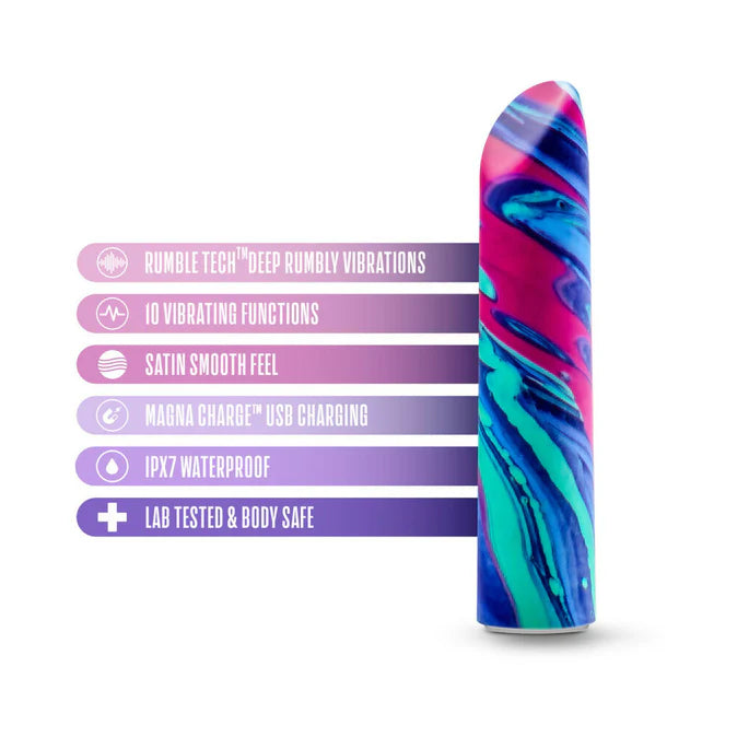 Are you ready for your newest addiction? The Limited Addiction Sublime Power Vibe is a colorful and sleek vibrator that delivers 10 deep, rumbly vibrations with the superior Rumble Tech motor! Cycle through 5 powerful speeds and 5 unique and thoughtfully curated patterns using the two button design to find your perfect pleasure preference. IPX7 submersible waterproof for bath and shower play and USB magnetic rechargeable, the Sublime Power Vibe is easy to clean and even easier to use. It has a smooth, sensual satin feel and it contains no phthalates, paraffins, latex, or fragrance.