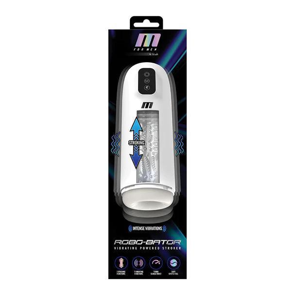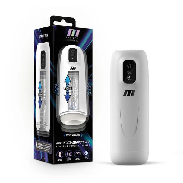 The M for Men Robo-Bator is armed to deliver a world of sexual power! This powerhouse male masturbator comes highly equipped with two elite performance functions, including 7 commanding vibrating and 7 stroking modes, delivering a truly mind-blowing experience. The soft and textured inner chamber has a tight fit to secure you for pleasure and feels incredibly smooth and realistic when inside. Slide in with ease, and choose your desired modes with just a few clicks of the button, harnessing the power of the Robo-Bator. Once youft.re close to your max, tap the turbo climax boost to activate the full force, driving your stroker to the highest level of powerful vibrations for an incredible climax finish! With easy USB charging, power up your stroker with ease so you can go longer and harder than before. Combining top class technology with a bold design, the Robo-Bator stands as a titan amongst menft.s stroker. Get ready to unleash your desires with this dream sex machine!