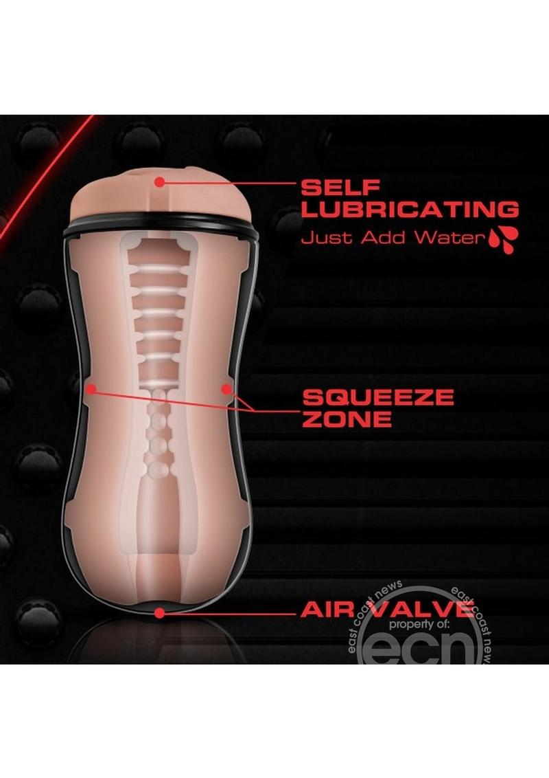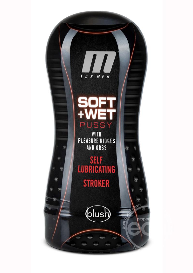 The M for Men Soft & Wet Pussy With Pleasure Ridges and Orbs stroker cup is loaded with fun! This pocket stroker is self lubricating. Add a little water or saliva and everything gets slippery. Just like the real thing! Squeeze the pliable cup and open or close the PerfectFlo™ air valve for more suction and pleasure. PerfectFlo™ mimics a blow job. You control the suction . M for Men masturbators are soft, flexible, and filled with sensational textures. Self lubricating properties are temporary. It will last up to 12 uses. To clean, wash with soap and water. Pat dry and allow to air dry before storing. You can start using water based, silicone or hybrid lubricants after self lubricating properties begin to diminish. Refresh it with our Blush Toy Renewal Powder when product is clean and dry. Measures 7.25" Length by 3.25" width. Considerably larger than most other similar products on the market. If you are bigger use it without the canister. It's open ended so its one size fits all.