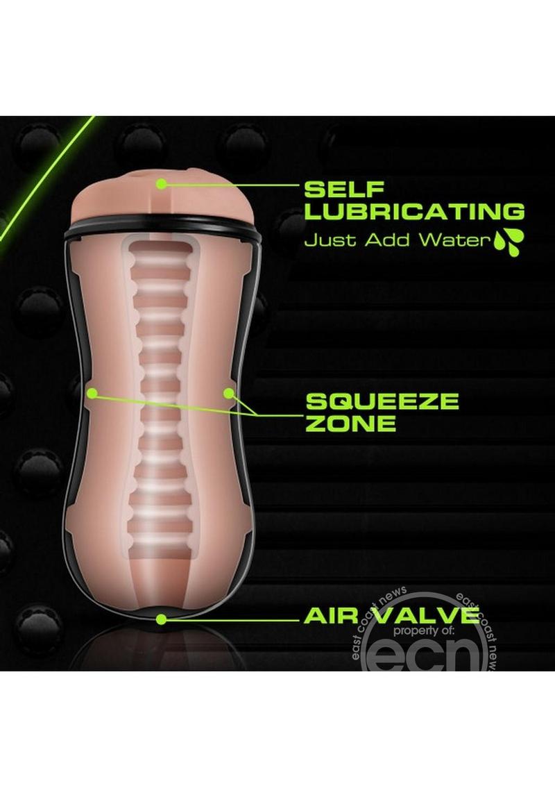 The M for Men Soft & Wet Pussy with pleasure ridges stroker cup is loaded with fun! This pocket stroker is self lubricating. Add a little water or saliva and everything gets slippery. Just like the real thing! Squeeze the pliable cup and open or close the PerfectFlo™ air valve for more suction and pleasure. PerfectFlo™ mimics a blow job. You control the suction . M for Men masturbators are soft, flexible, and filled with sensational textures. Self lubricating properties are temporary. It will last up to 12 uses. To clean, wash with soap and water. Pat dry and allow to air dry before storing. You can start using water based, silicone or hybrid lubricants after self lubricating properties begin to diminish. Refresh it with our Blush Toy Renewal Powder when product is clean and dry. Measures 7.25" Length by 3.25" width. Considerably larger than most other similar products on the market. If you are bigger use it without the canister. It's open ended so its one size fits all.