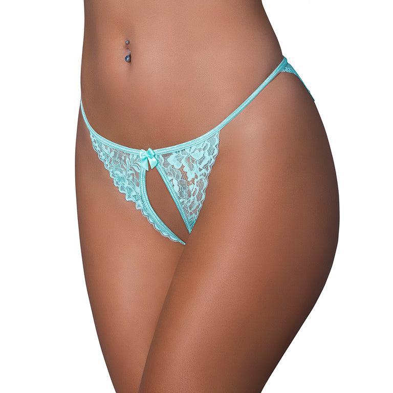 Boost your lingerie collection with the Eye of Love Pheromone x Exposed Lingerie Crotchless & Open Back Panty 2-Pack. This women's underwear pack features two ultra-sexy panties crafted from soft, stretchy floral galloon lace in aqua and lilac. Designed with a seductive crotchless front and open-back detail, each piece is adorned with a delicate satin bow for a flirty finish. Each pack includes a 1 ml Eye of Love Lilac Dream pheromone perfume sample, enhancing attraction and relaxation. Perfect for anyone looking for an enticing mix of elegance and allure.