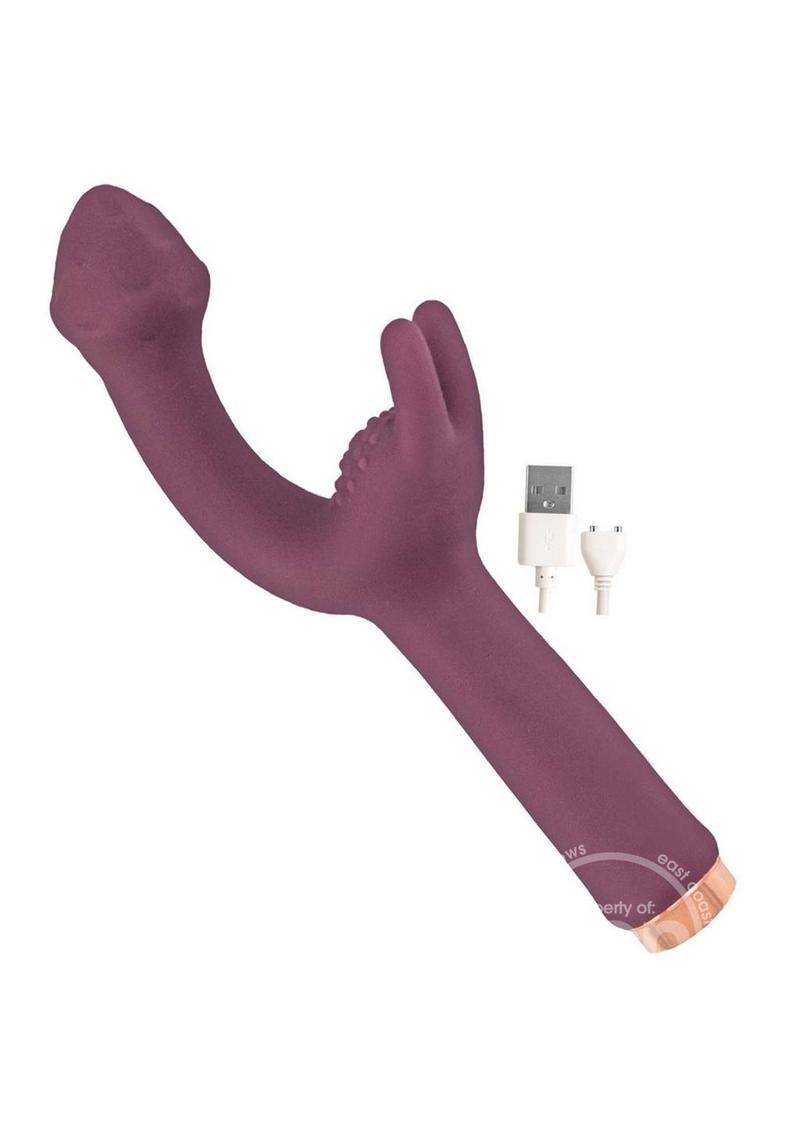 Mystique G-Spot features two powerful motors for dual stimulation to help achieve that great big “O”. Press and hold the button on the bottom of the vibe to power on then press again to cycle through the 10 powerful functions. The slim, textured vibe is perfectly curved to reach the g-spot while the firm twin ticklers surround the clitoris. To charge, connect the magnetic charging points on the charger to the base of the product then plug the USB end into a power source. Please clean with toy cleaner before and after each use. Enjoy with a water-based lubricant.