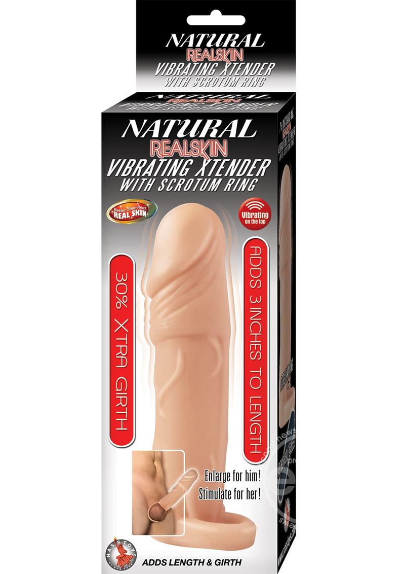Natural Realskin Vibrating Penis Extender with Scrotum Ring -