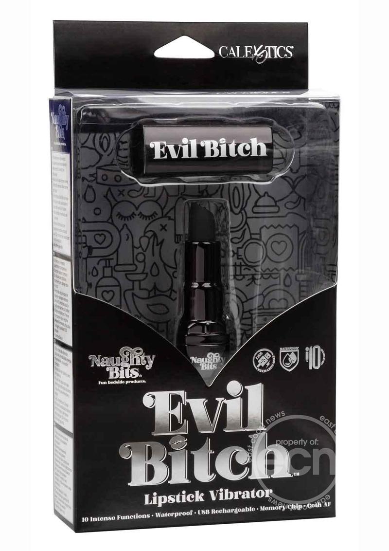 Watch out, the Naughty Bits™ Evil Bitch™ Lipstick Vibrator is naughty and nice. The edgy black lipstick design, 10 powerful vibration functions and whisper-quiet tungsten motor are made to thrill wherever your adventures take you.