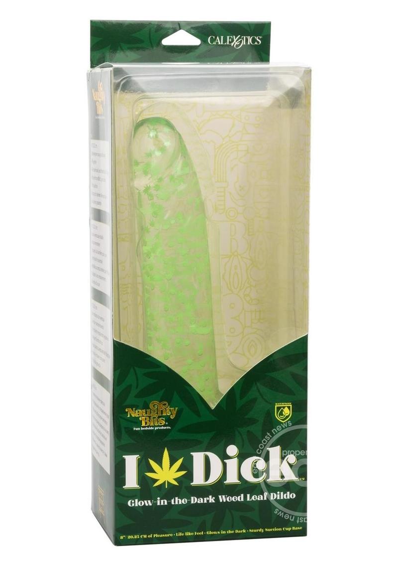 Naughty Bits I Leaf Dick Glow-in-The-Dark Weed Leaf Filled Dildo - Green