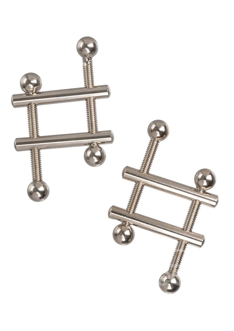 Includes 2 fully adjustable multi-use clamps. Unique crossbar design with fully adjustable twin screws. Heavy-duty metal. Non-tarnishing, nickel-free.