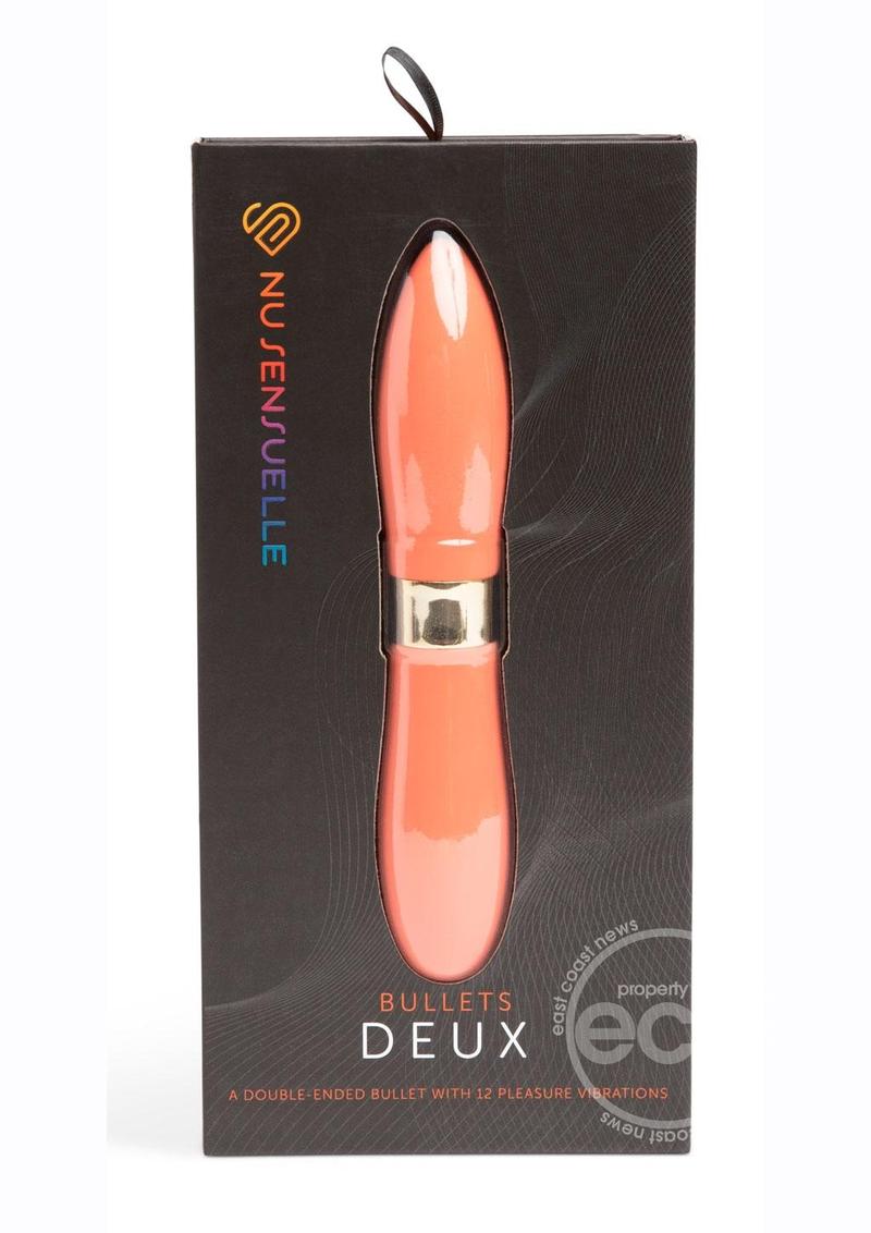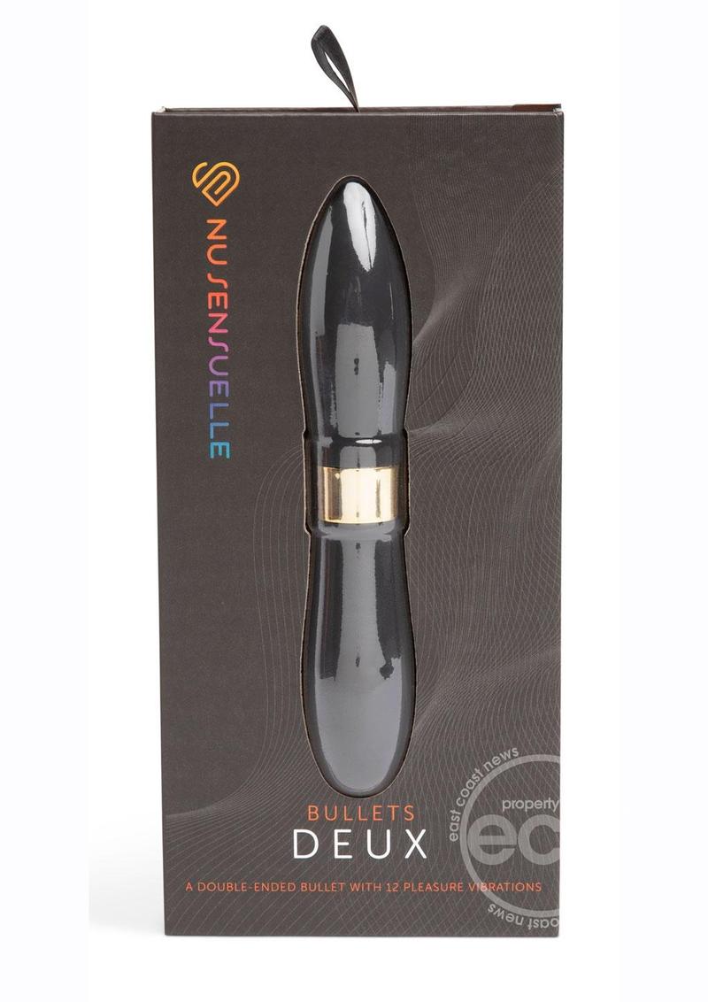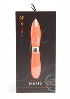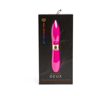 Elevate your vibe with the new Deux Bullet from Nu Sensuelle. The Deux Bullet appeals to users seeking the function of multiple toys wrapped up in one versatile vibe. Each end of the bullet packs 12 vibration speeds and flaunts a distinct shape, which have the ability to be operated independently. The bullet’s pointed end is optimal for pinpoint stimulation while its more rounded end provides maximized coverage. Because the 60SX motor generates an intensely deep and rumbly vibration, the product comes equipped with dampening inside the product’s handle to ensure comfort for the user’s hand. Each end of the bullet has a new proprietary motor, the 60SX. This motor is powerful and provides deep vibrations. Each motor is independently operated, and the two distinct shapes at each end make the Deux Bulelts versatile and fun for clitoral stimulation. 12 speeds per end, rechargeable, body-safe silicone, waterproof and submersible.