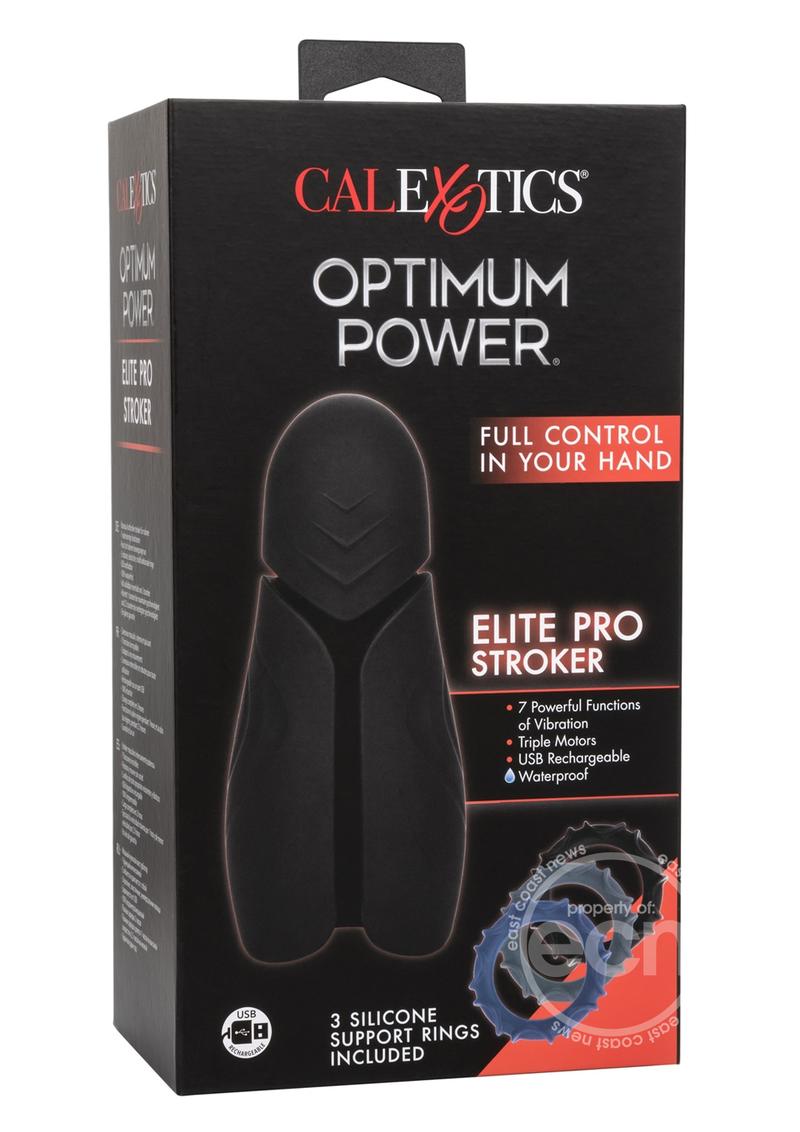 Optimum Power® Elite Pro Stroker is the highest in high-tech, high-end masturbators. Rather than just a simple piece of material, this one's got the juice, too! The interior of this adult toy is ribbed with nodes and ridges to maximize your pleasure and an included unique head teaser. The open-sleeve design allows you to have the grip you desire, with a flexible sleeve for a loose or tight sleeve, and will also maximize cleaning. The powerful triple-internal-motors produce a strong vibe with 7 functions of vibrations and pulsation, escalating to your perfect pleasure pitch, with this stroker pushing an eye-watering 60 minutes on high speed and an unbelievable 150 minutes on lower power settings. A simple recharge of two hours brings the entire device back up to full power. This handheld vibration machine will boost your pleasure with the 3 silicone support rings, included for your stimulation, and the state-of-the-art memory chip will resume on the last function you used, ensuring a quick, no-hassle start and end to your late night or early morning sessions. The included travel lock for the Optimum Power® Elite Pro Stroker ensures no embarrassing TSA moments, with reactivation requiring a 3-second push.