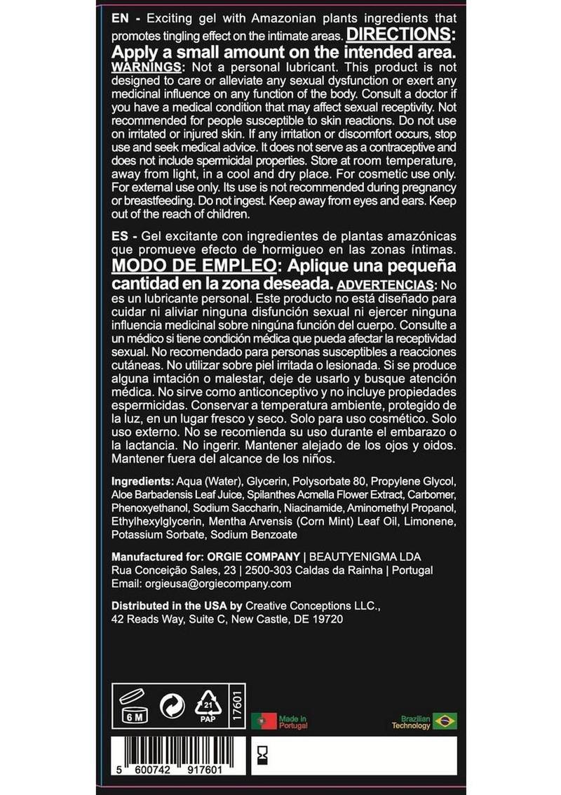 Sexy Vibe! High Voltage. The extra Strong. Arousal intimate gel formulated with a higher concentration dose of active ingredients of plants from the Amazon rainforest that deliver instant extra strong vibrating and tingling effects on the intimate areas.