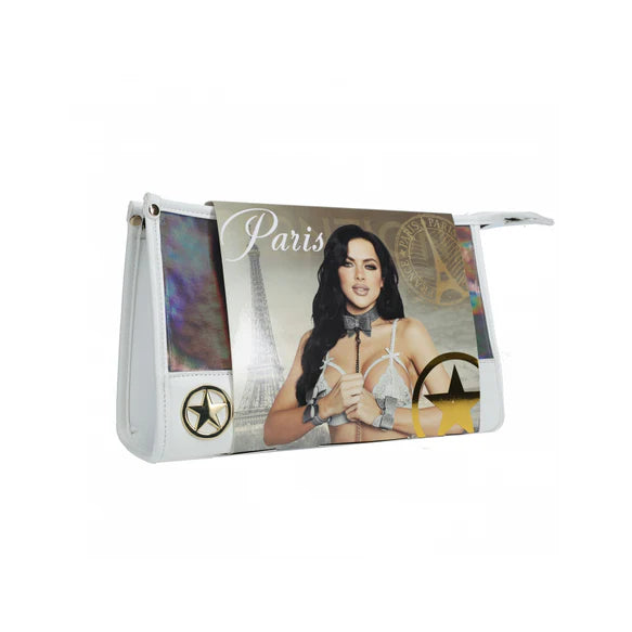 The Paris Collection Kit by Ouch! comes in a gorgeous handbag, with a high end iridescent look on its hardware, and it includes a collar and leash, a set of handcuffs, and set of ankle cuffs, a blindfold, a breathable ball gag, a flogger, an under the mattress restraint, and a rechargeable vibrating bullet. The perfect kit to satisfy even the most advanced bondage lovers. All Shots toys come with a 1-year warranty.
