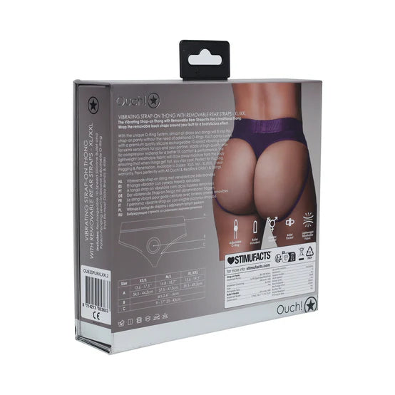 The Vibrating Strap-on Thong with Removable Rear Straps fits like a traditional thong. Wrap the removable back straps around your butt for a bootylicious effect.