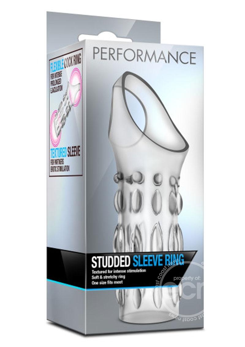 Make your rod into the ultimate sex toy with the Performance Studded Sleeve Ring! The cock sleeve with attached strap for your nut sack will surround your throbbing manhood to make it even thicker and studded, while the strap keeps the sleeve securely strapped to your rod. ! Show your partner the ultimate time with our Performance Studded Sleeve Ring! This toy is made of TPE; fragrance free, body safe, and easy to clean! Just wash with warm soap and water, or your favorite toy cleaner, before and after every use. Pat dry with a soft towel before storing.
