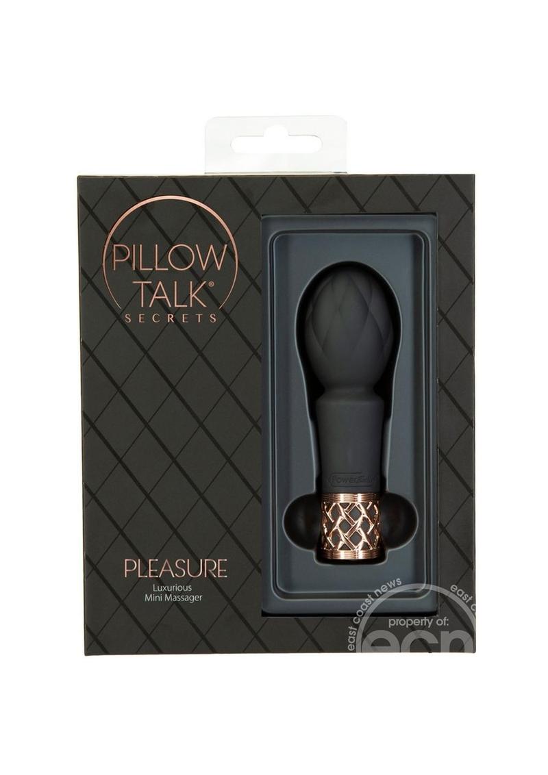 Pillow Talk® Secrets’ petite clitoral vibrator tempts you to experience real and raw Pleasure! The elegant simple design of this mini wand features a quilted pattern with rounded peaks and valleys. Pleasure may look small, but the power inside is anything but! Using the incredible PowerBullet® motor, this mini wand delivers deep rumbles at varying speeds to take you from luxurious massage to leg-shaking orgasm. The quilted design of the flexible head lets you play with different sensations, so explore your body and deliver delicious waves of pleasure wherever you desire. The Pleasure’s compact, narrow design gives you the accuracy you need, while the vibrations are directed towards the tips, not the handle, so your fingers won’t tire out before you do.