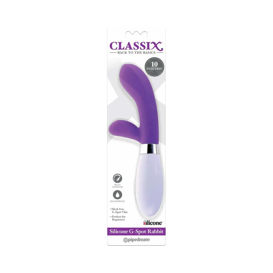 Enjoy the classic thrill of an ultra-smooth silicone G-Spot Massager with internal and external vibration for twice the pleasure and double the fun! A modern, curved design allows for teasing clitoral stimulation and G-spot pleasure simultaneously. Choose between 10 modes of pulsation and vibration with the simple push of a button. 10-function full-sized vibrator measures 8 inch long (20 cm), 1.25 inch diameter and uses 2 AAA batteries to power up (Not Included).