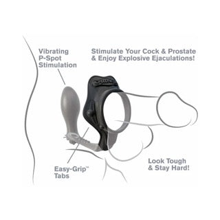 Pipedream Fantasy C-Ringz Rock Hard Ass-Gasm Vibrating Silicone Cockring With Anal Plug Black
