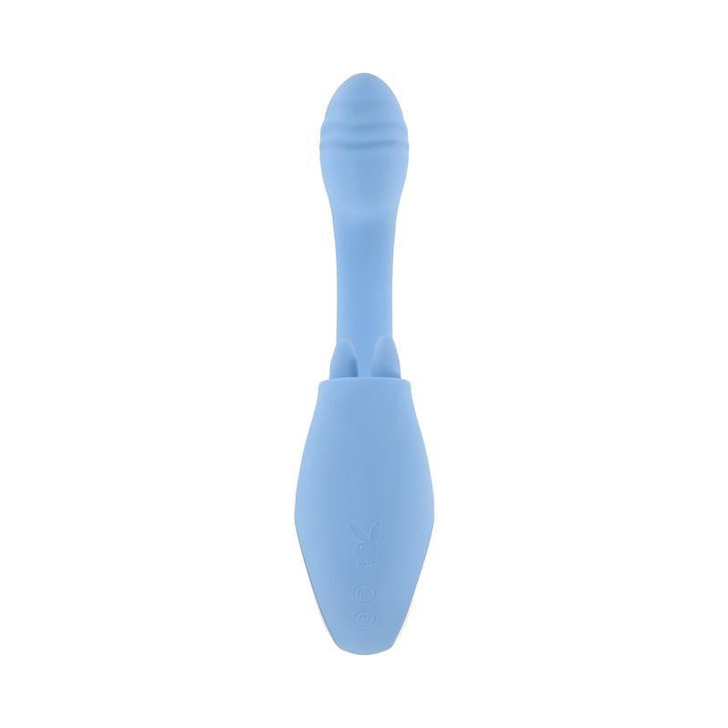 Let pleasure surround you like a stunning Sapphire Sky! As soon as you slip your finger through the stylish chrome-looped handle and power up, you'll be hooked on this unique toy. First, the beautifully arched flexible main shaft is designed for effortless G-spot stimulation with a deeply textured, tapered head. Second, the double-tongued clitoral stimulator feels like nothing you've ever experienced. With powerful vibrations coursing through two waving tongues, your pleasure will amp up so fast you'll need to pull it away to catch your breath. But then get ready to plunge into a deep sensation so inspiring that...the sky's the limit!