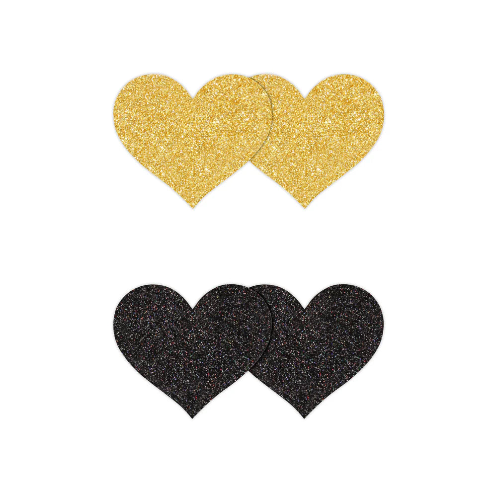 Pretty Pasties Glitter Hearts Black/Gold 2 Pair