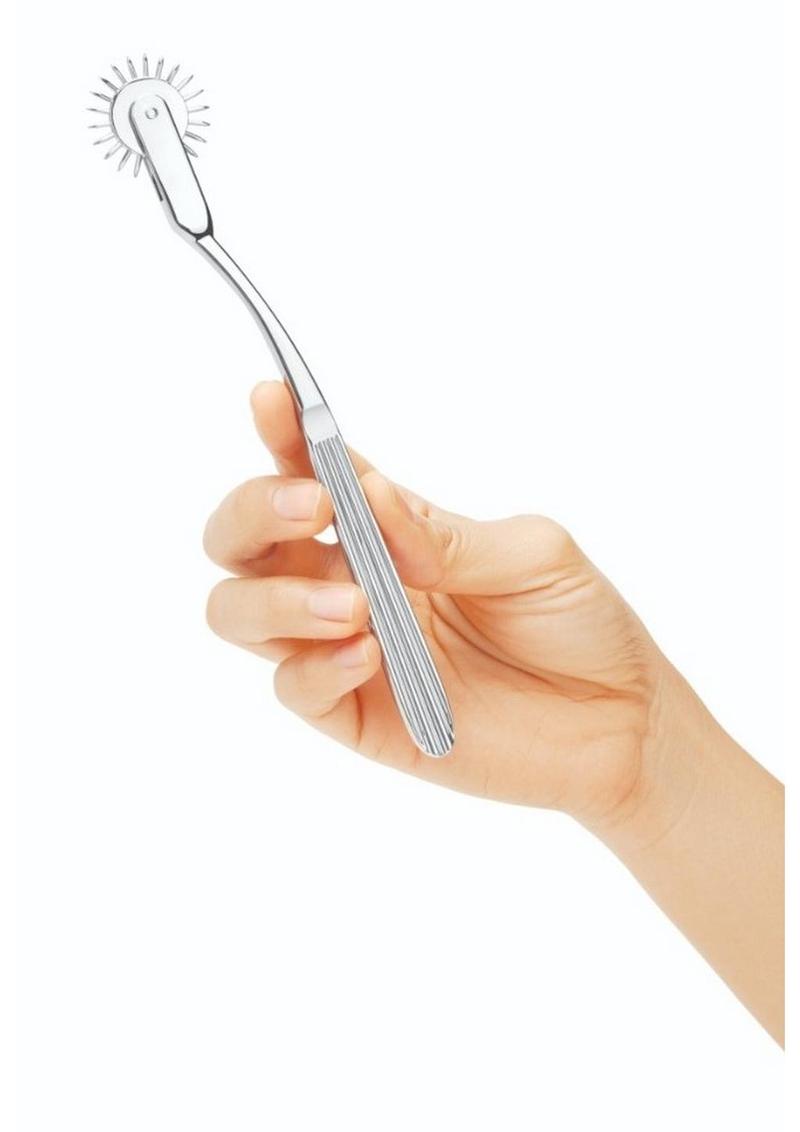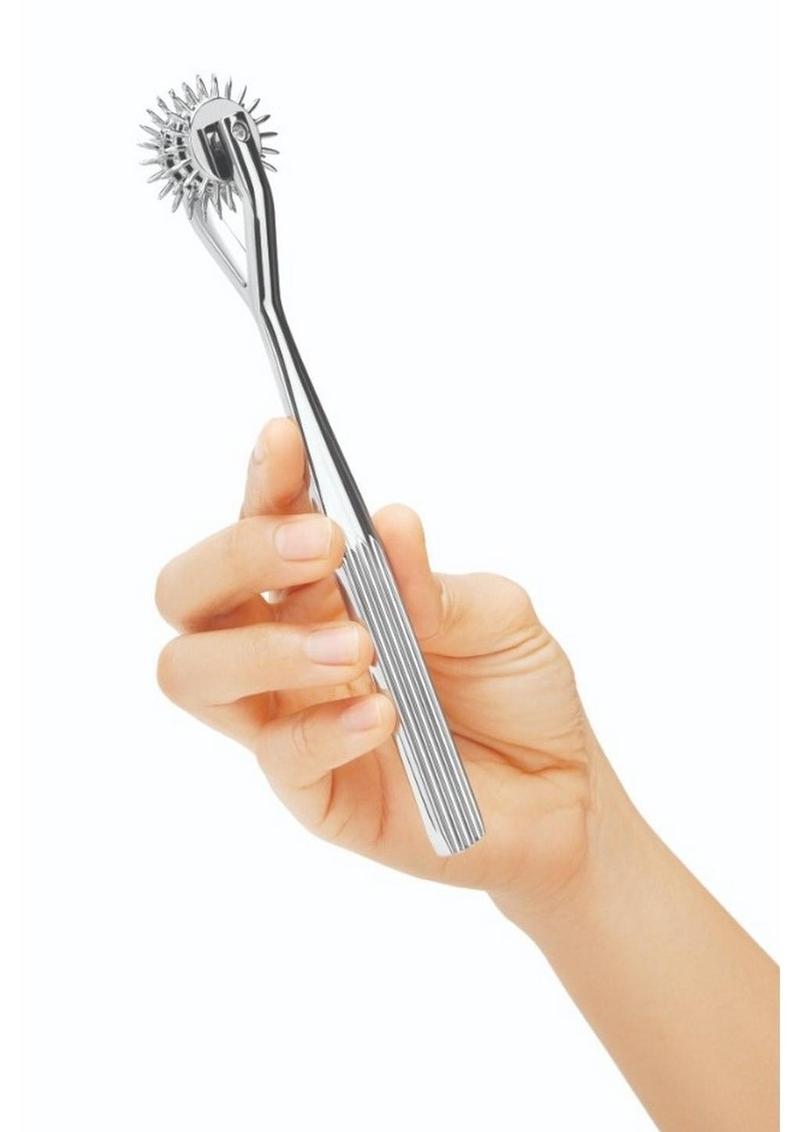 Made of hypoallergenic zinc alloy and designed for spine-tingling sensory play, the pinwheel's silver finish adds a sleek look. Intensify the sensual feeling of touch with each of the five rotating reels inching along your body or your partner's. The ergonomic handle ensures impeccable control, allowing you to navigate every twist and turn with accuracy. Unleash your desires as you delve into BDSM or medical fetish explorations with confidence. Heighten your senses with every glide of the pinwheel against the skin. Whether you choose the single-reel, triple-reel, or five-reel configuration offers covers more area, making it an indispensable tool for those seeking extraordinary sensations. Dive into a realm of heightened pleasure and indulge in the allure of sensation.
