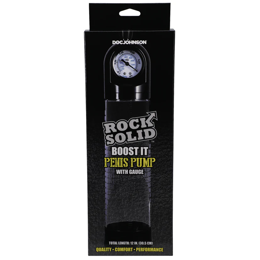 Rock Solid Boost It Penis Pump with Gauge Black/Clear