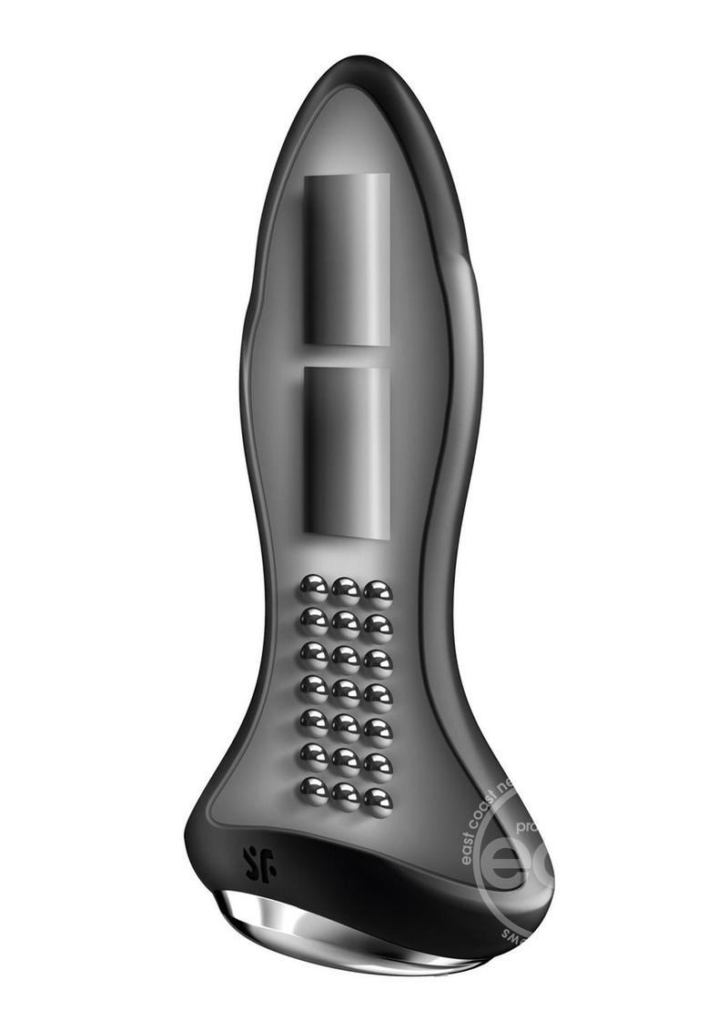 This anal vibrator is skilled. Featuring two powerful motors, it provides dual stimulation with distinct sensations. The upper section of the voluminous plug offers thrilling prostate massage through vibrations, while the rotating pearl chains in the base provide additional stimulation to the anus. With an intuitive one-touch button, you can easily access 10 different vibration programs.