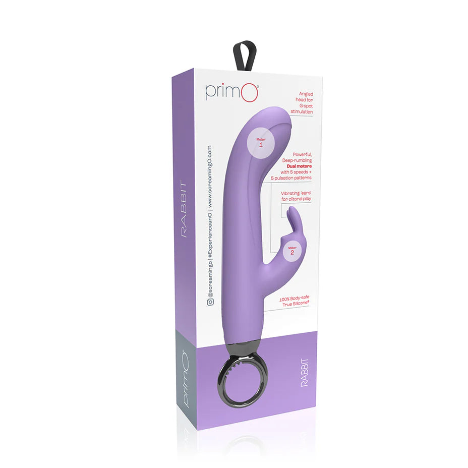 Crafted from buttery-soft True Silicone™, the Screaming O PrimO Rabbit has an insertable length of 4.5in. and a generous 4.25in. girth, which fits most bodies comfortably. The 5+5 motor delivers 5 steady vibration speeds and 5 pulsation patterns at the touch of a button, and the iconic ft.Oft. crafted from ABS allows users to easily grip and position the vibe just where it feels best. The PrimO Rabbit runs for 60 minutes on a single charge and comes with a USB charging cable.